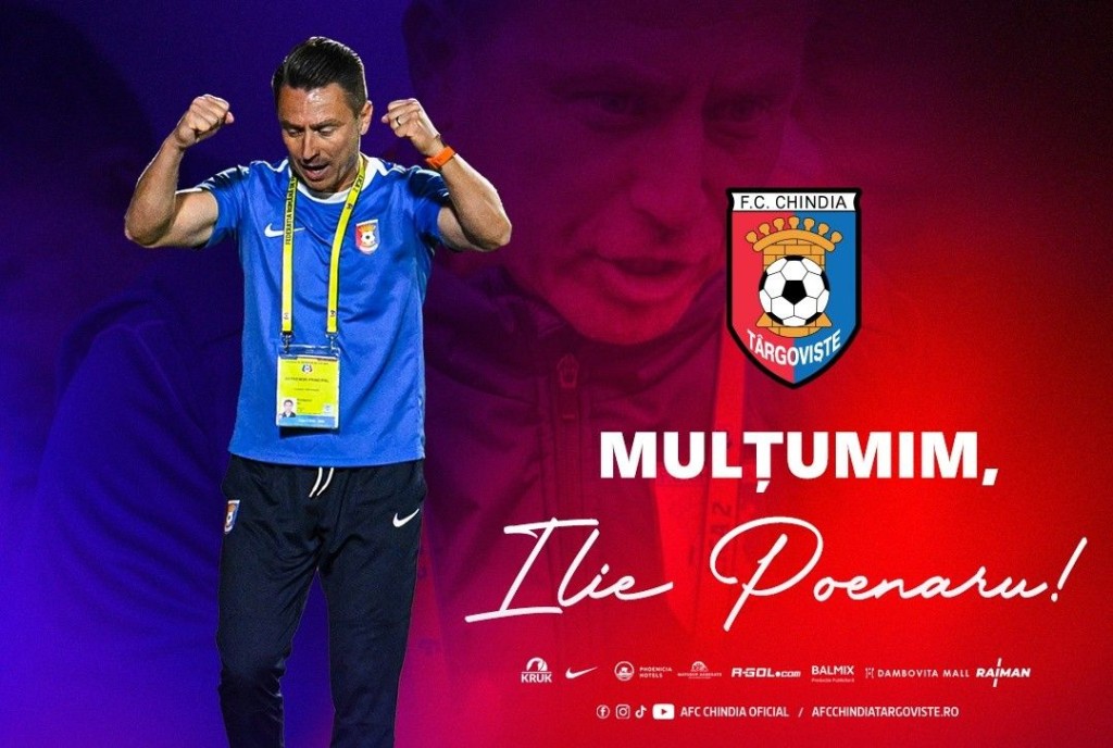 Chindia Târgoviște anunță încetarea de comun acord a raporturilor contractuale cu antrenorul Ilie Poenaru. Numit înaintea acestui sezon, Poenaru a pregătit echipa noastră în 26 de meciuri, cu un bilanț de 13 victorii, 3 egaluri și 10 înfrângeri. Cu el antrenor, Chindia a obținut calificarea în play-off-ul ligii secunde.